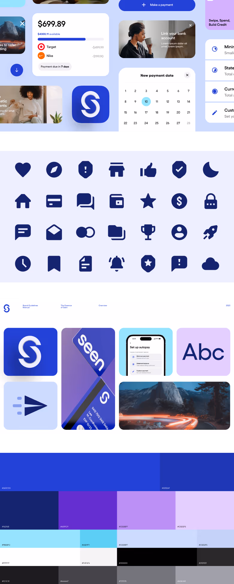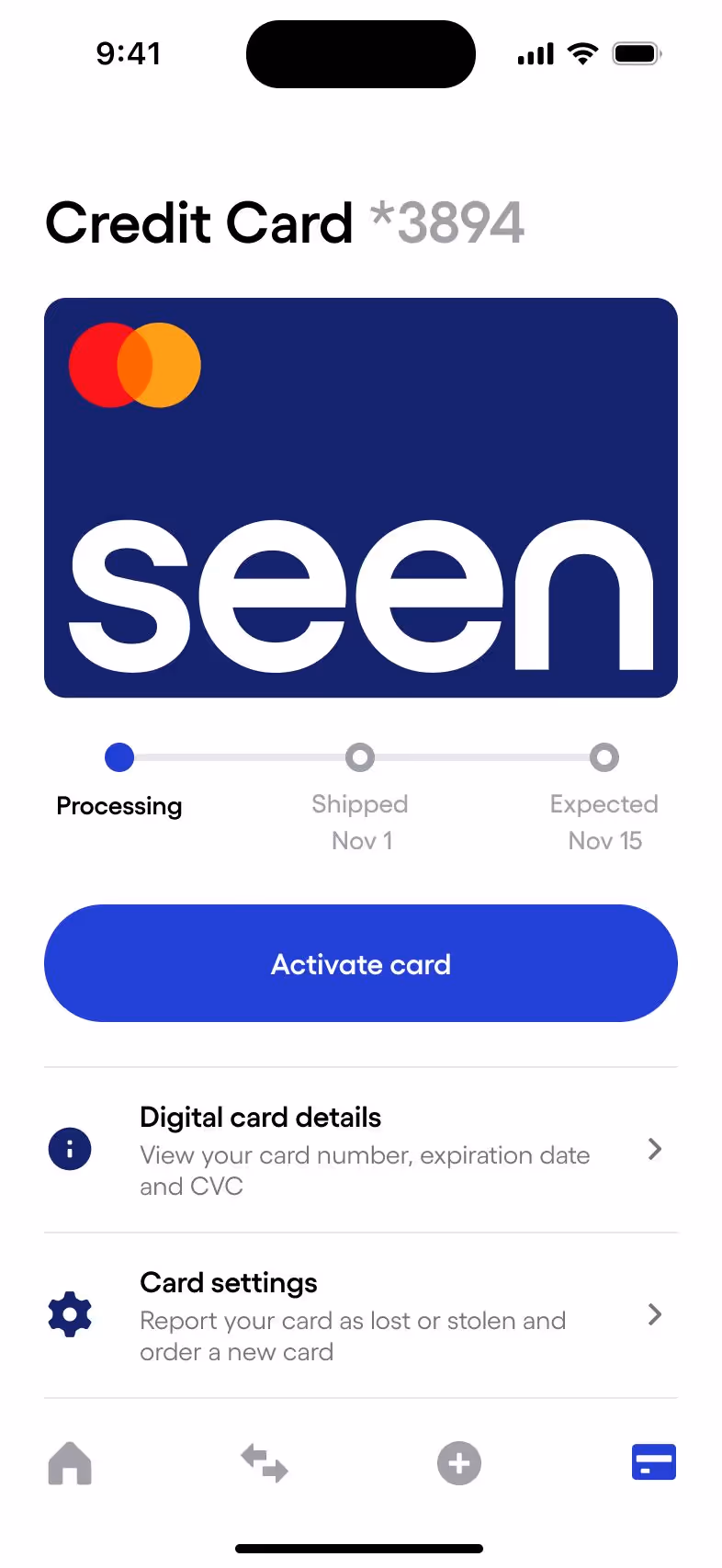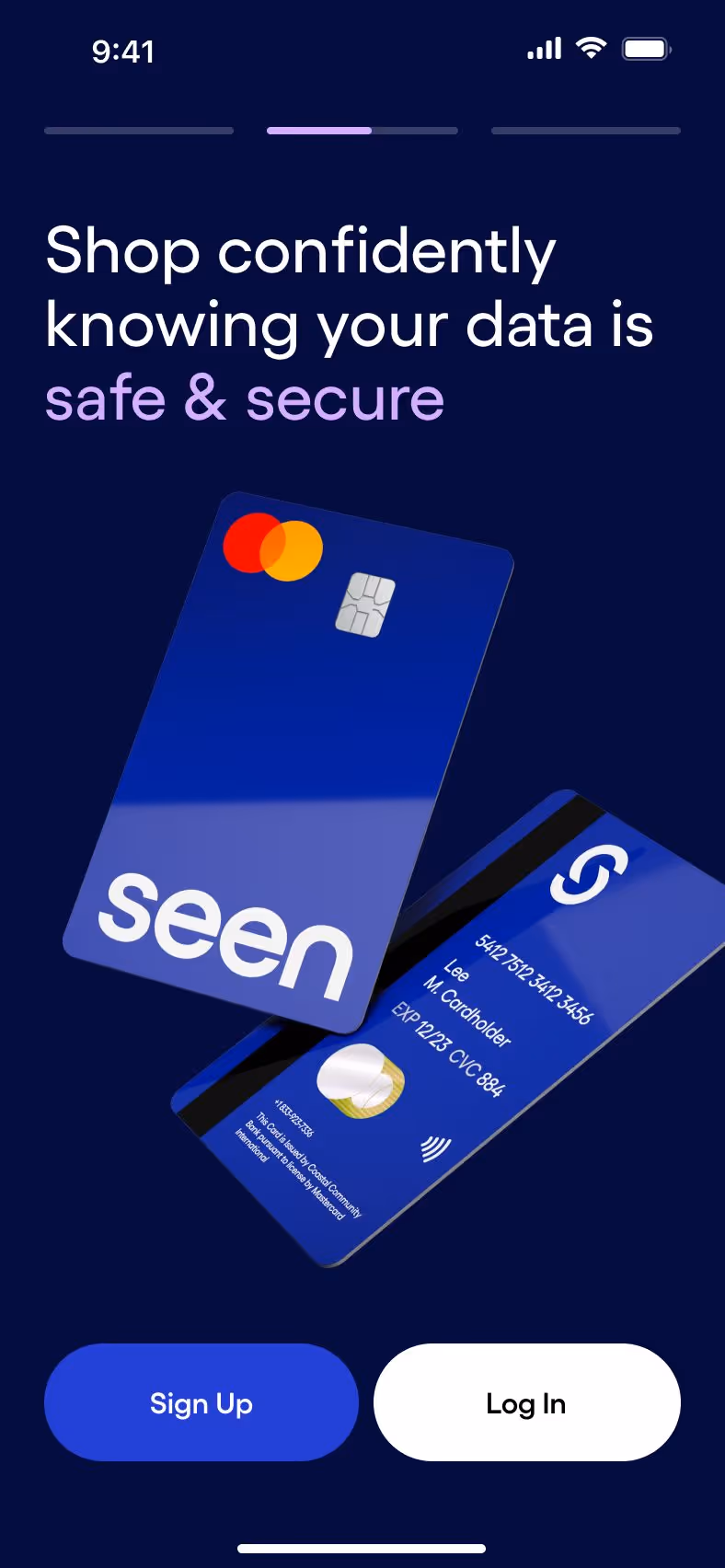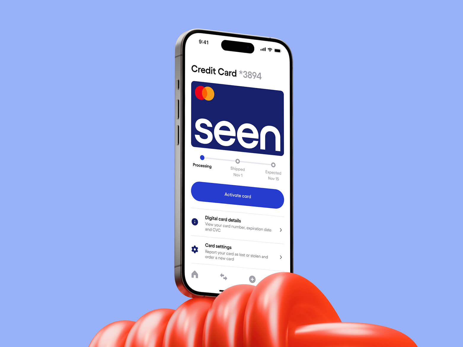 The Seen mobile app is part of the overall project to define the visual language of the brand, including the core identity and website design. As the mission control for Seen users, the app is accessible and simple, designed to compete in a the crowded fintech app space.