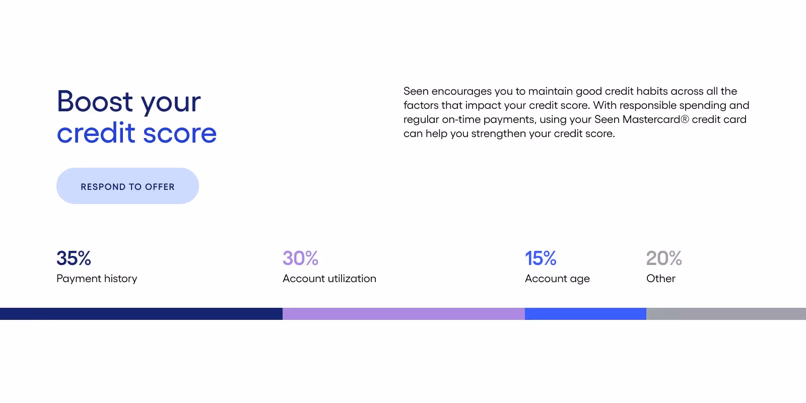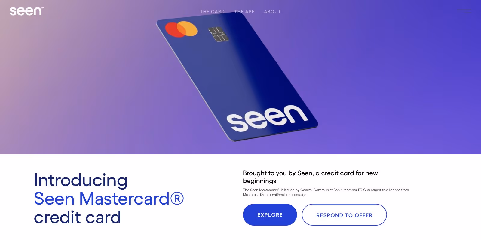 Seen is the card for building credit, no matter your financial health. After establishing a fresh, inviting Seen brand identity, that system needed to be applied to web as the primary place for new users to learn about the platform and make an informed decision to convert.